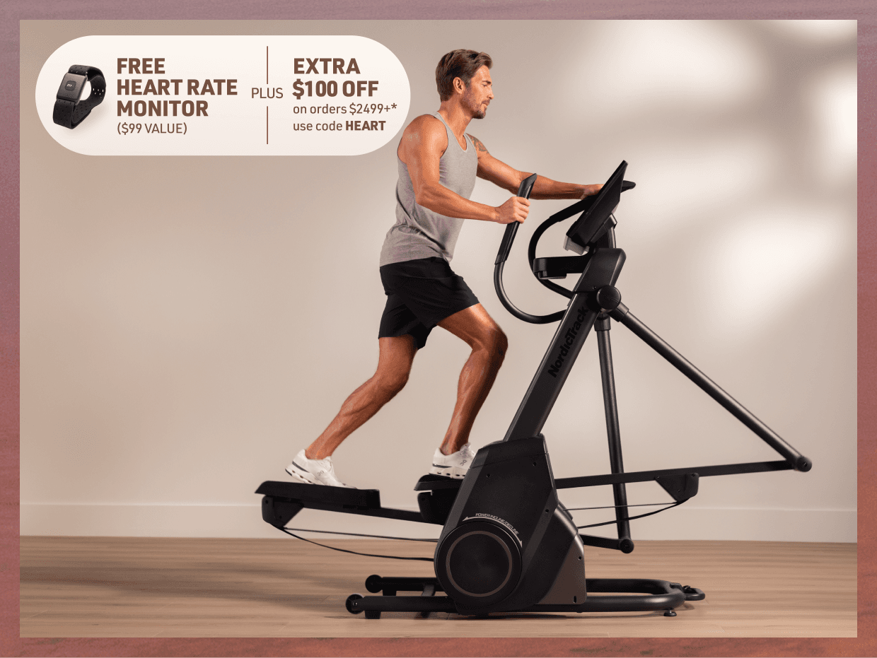 *Free Heart Rate Monitor ($99 value) + Extra $100 off orders $2,499+ (“Offer”) available only from February 3, 2026 until February 9, 2026 @ 11:59 PM MST for U.S. residents, 18+. Extra $100 discount applies only to qualifying orders with a subtotal of $2,499 or more at www.NordicTrack.com and does not apply to taxes, shipping, or other charges. Free heart rate monitor is available on a first-come, first-served basis while supplies last. Retail value of free item: $99. Limit one (1) free item and one (1) discount per customer and per order. Offer is not transferable, substitutable, or redeemable for cash or account credit, has no cash value, and will not be applied retroactively. Offer may not be combined with other promotions. Void where prohibited by law. Must enter promo code HEART at checkout to receive both the discount and free gift. Excludes Ultra Series products. NordicTrack reserves the right to end, revise, modify, or extend this Offer or its terms at any time without notice. NordicTrack is not responsible for any Offer errors, including technical errors.